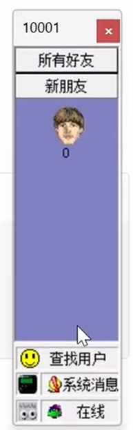 登录后的初代QQ界面简洁,保留了最原始的核心功能,与如今功能丰富的QQ形成鲜明对比,尽显早期互联网产品的简约风格。