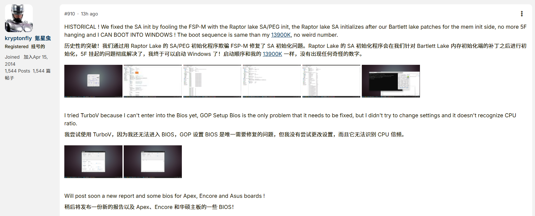 Overclock.net论坛上的Bartlett Lake-S改装项目取得重大突破,一位改装者成功将Intel酷睿9 273PQE处理器,在华硕Z790主板上引导进入Windows系统。此前,该改装者借助AI辅助重写了BIOS并补齐了缺失的支持模块,使主板能够识别这款处理器,但无法完成操作系统启动。