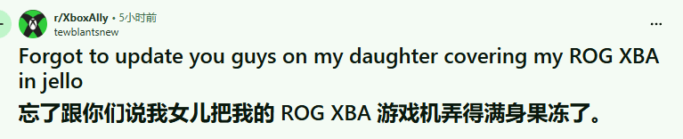 有玩家在社区分享了自己的掌机意外遭遇,他的ROG Ally X被家中3岁女儿弄上了大量果冻。好在机器当时装有保护壳,果冻只进入了机身背部的通风口。