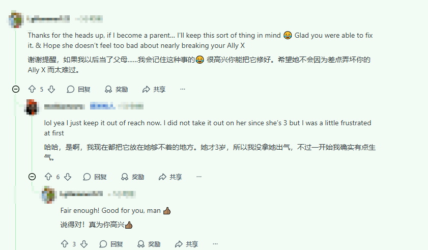 不少网友看到经历后表示会吸取教训,有网友提醒家中有孩童的玩家要将掌机放在孩子接触不到的位置。也有网友分享了类似的意外情况,还有人建议玩家为电子产品增加相关保险,降低意外损坏带来的损失。