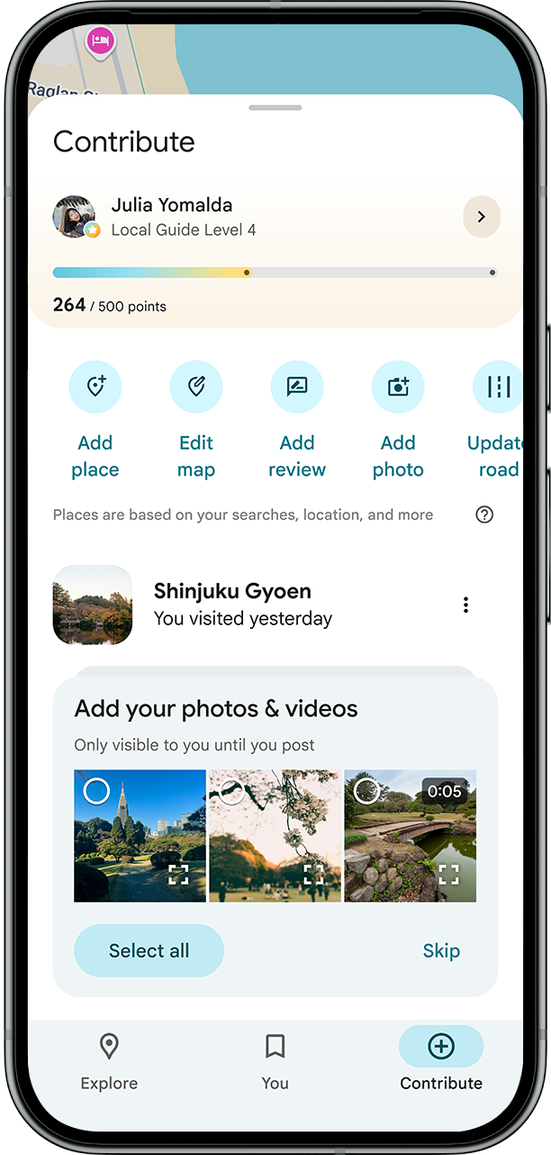 目前这项图片说明功能已在部分区域上线:支持在英文环境下,于美国市场的 iOS 版 Google Maps 中使用,后续将逐步向全球范围和Android系统扩展。与此同时,Google也在优化内容贡献的入口设计,当用户在手机设置中开启“媒体访问权限”后,Google Maps 的“Contribute(贡献)”标签页会直接展示最近拍摄的相片和短视频,方便用户一键选择并发布。Google解释称,用户上传的照片和视频能帮助其他人更好地理解一个地点的“整体氛围”或是菜单等最新情况,现在这些内容也更容易被找到和分享。