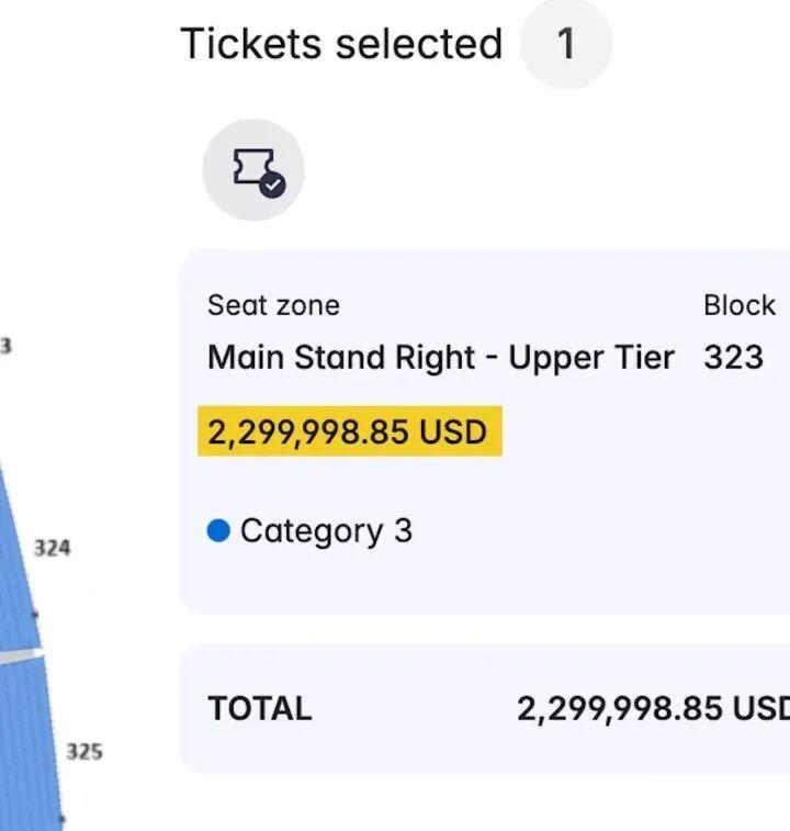 2026年美加墨世界杯迎来全新变化,国际足联将首次上线官方球票转售平台,开放正规二手票务流通渠道,球迷可在平台内挂牌转让已购入的赛事球票。近期,该官方转售平台已出现天价待售门票,共计4张球票挂出超高定价,单张标价高达2299998.85美元(折合成人民币约1572万元)。