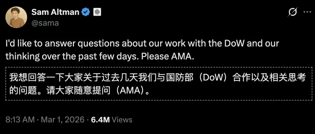 OpenAI先是公布合作详情,试图挽回口碑,奈何民意汹涌,奥特曼等OpenAI高管在线实时回答相关问题,6百多万网友围观:
