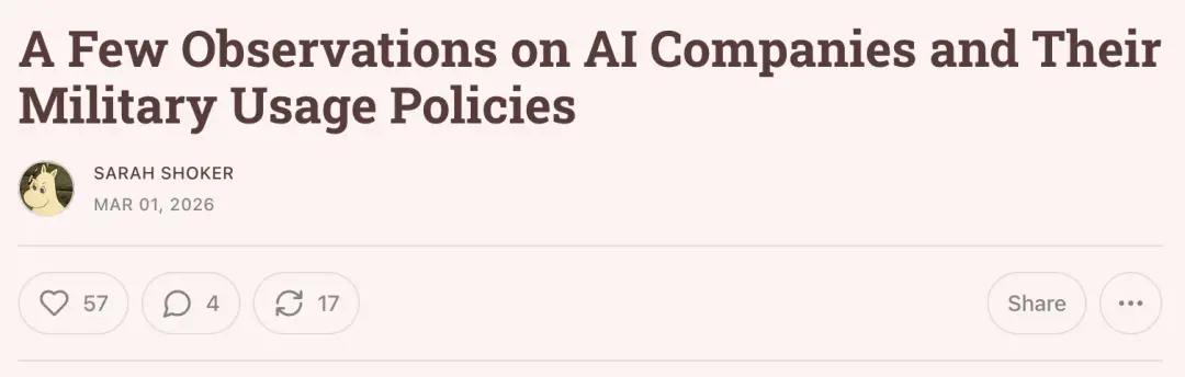 而不是在Anthropic因坚守原则被列入黑名单后,趁火打劫,成为那个接替他们的“军火承包商”。