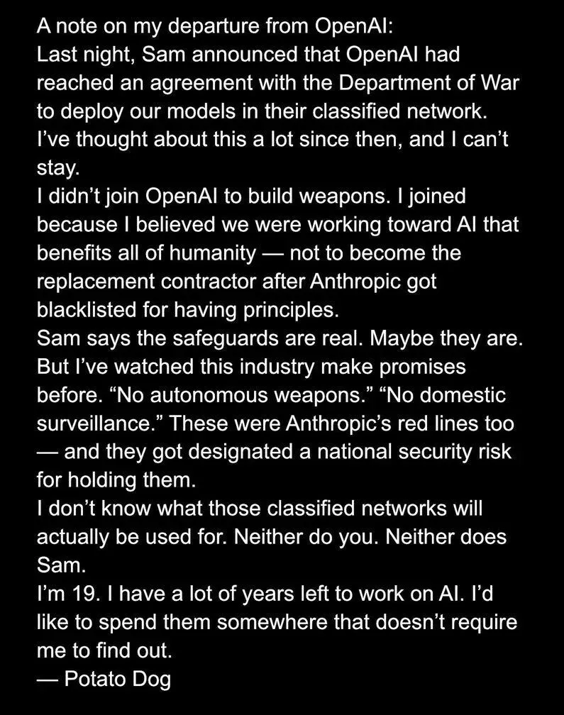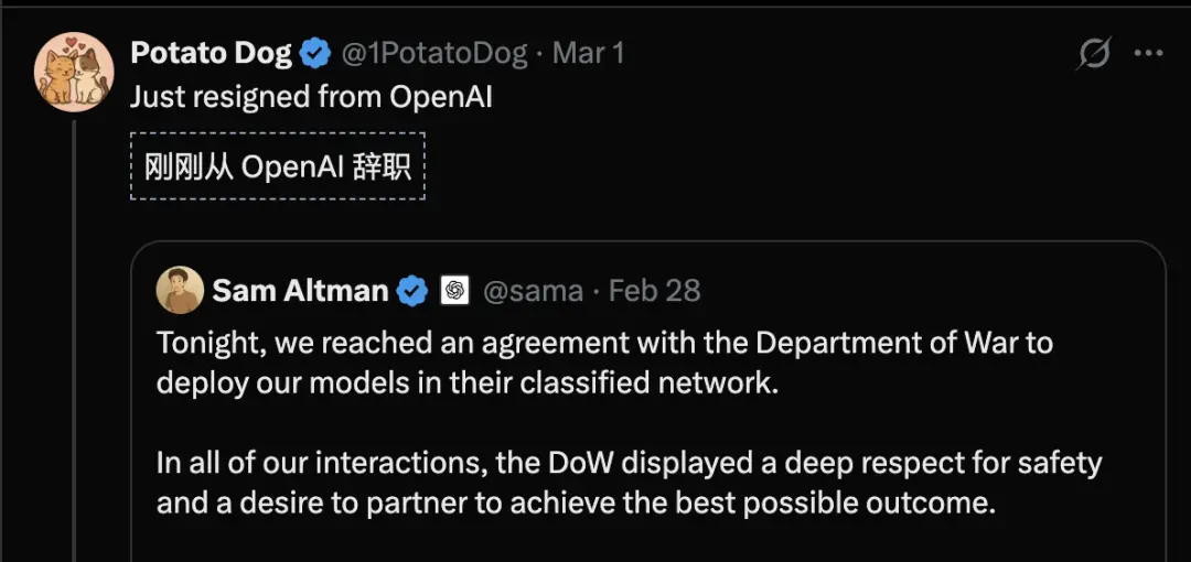 (OpenAI与美国国防部的交易金额)也就几百万美元,与我们200多亿美元的年收入相比微不足道,绝对不值得为此引发公关风波。