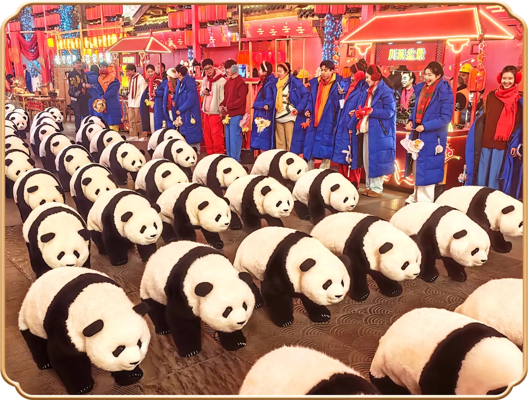 除了人形机器人 MagicBot Z1 在《智造未来》的歌曲中担任伴舞之外,你或许没有注意到,今年分会场的那些四足机器狗、轮式机器狗和机器熊猫,其实都是魔法原子的产品:
