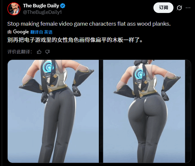 近日,推主@TheBugleDaily1重提往事,指出2023年推出的“猎空·正装”皮肤臀部建模相比初始皮肤明显“缩水”,认为暴雪为了避免角色被“过度性化”而有意削弱了造型,呼吁恢复更饱满的形象:“别再把电子游戏里的女性角色画得像扁平的木板一样了。”