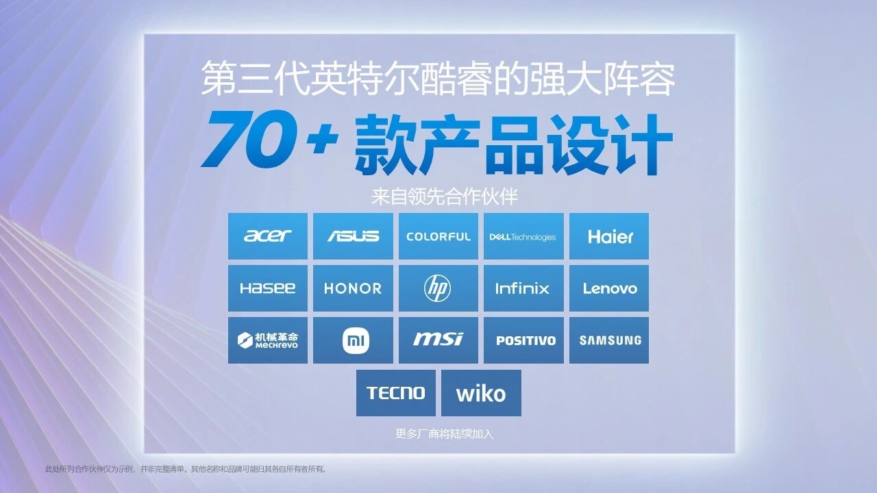 即日起,基于酷睿3系列处理器的消费级、商用产品将陆续上市,首批就超过70款,品牌涵盖宏碁、华硕、七彩虹、戴尔、神舟、海尔、荣耀、惠普、Infinix、联想、机械革命、小米、微星、Positivo、三星、Tecno、唯科(Wiko)。