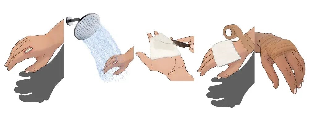 让清水流过伤口,不需要强力搓揉,也不需要刻意将香皂、肥皂擦入创面,少量的清洁产品流进伤口并无大碍,最后冲干净即可。有出血的话还需要止血。对于普通的、没有伤及动脉和深层组织的皮肤伤口,可以直接加压止血,使用无菌纱布或干净敷料直接覆盖在伤口上,用手掌持续施加稳定且有足够的压力。建议持续按压数分钟,中途不要频繁松开检查,以免破坏刚形成的血凝块。出血停止后,可用生理盐水或流动清水轻轻冲洗伤口周围,去除污物。必要时就医处置。不要用酒精直接清洗开放性创面,它虽然能杀菌,但也会严重伤害到周围健康的组织细胞,并延缓伤口愈合。