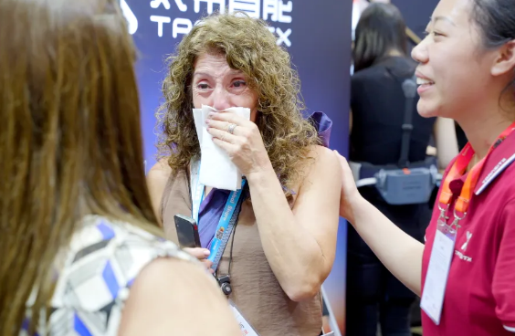 第139届广交会上,一位外籍残障女子借助中国外骨骼机器人重新“站”了起来。现场网友纷纷感叹:“这就是科技的力量!”本届广交会已连续三届设立服务机器人专区,成为展会上最受关注的区域之一。开展首日,一位坐着电动轮椅的阿根廷客商便来到一家外骨骼机器人展位前排队。