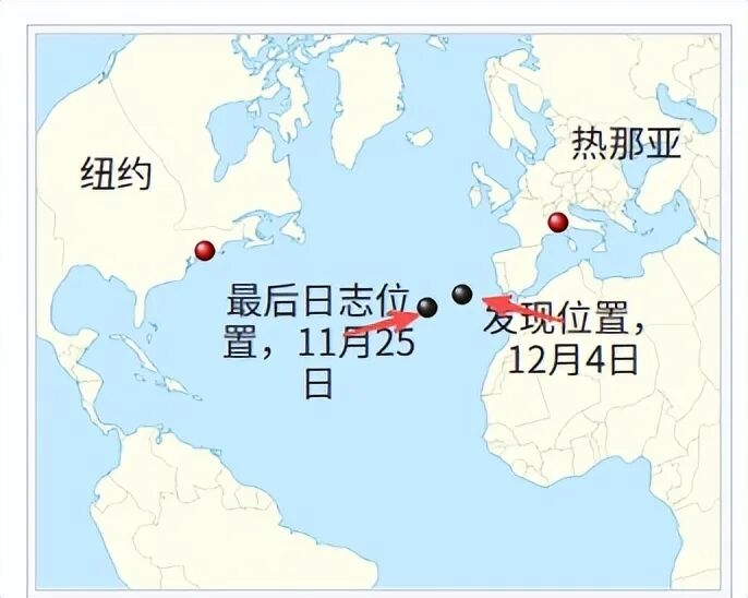 这艘船是在1872年11月7日从纽约出发,计划将1701桶酒精运往意大利热那亚。