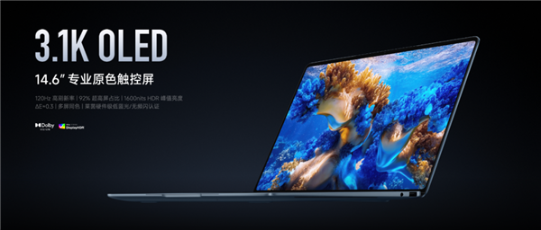 配备14.6英寸OLED专业原色触控屏,3.1K分辨率,支持120Hz刷新率,1600nits峰值亮度,同时搭载面积达129cm²的大尺寸压感触控板。