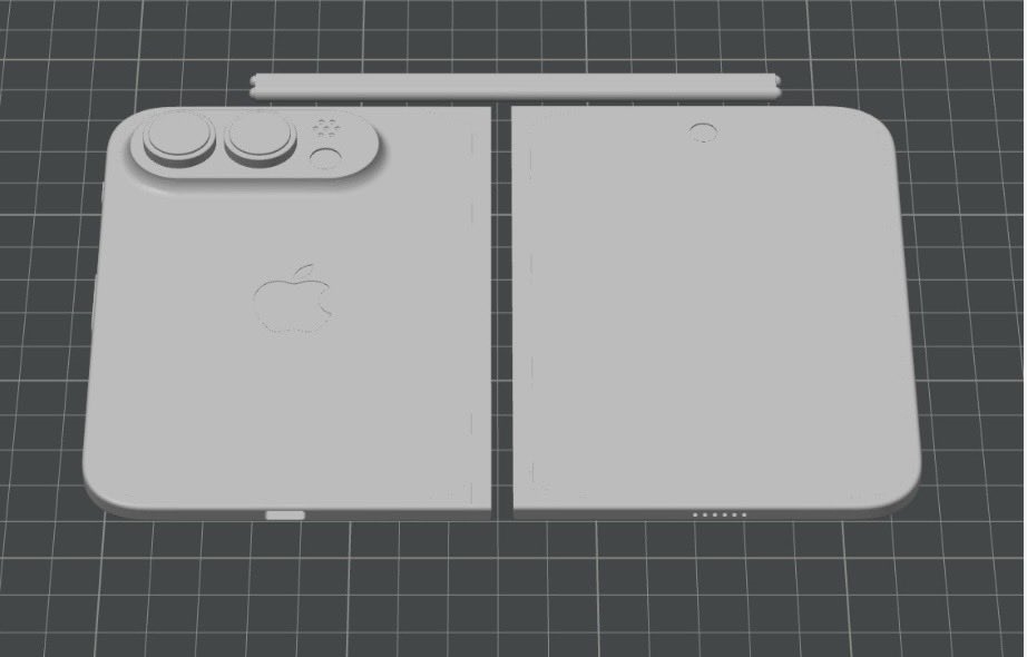 从模型来看,iPhone Fold的背部采用了横置相机模组设计,其硬件规格包含了两颗4800万像素镜头,分别是主摄与超广角,足以应对绝大多数高画质拍摄场景。