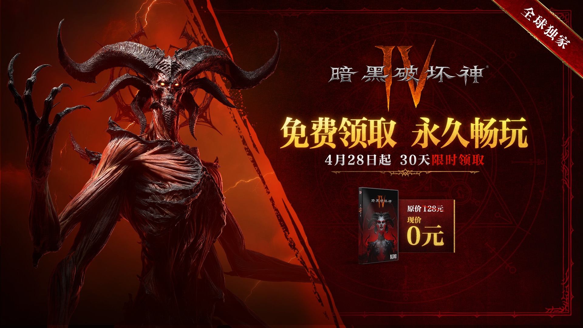 凡在4月28日之前已拥有任意版本国服《暗黑破坏神Ⅳ》的玩家,均可在4月28日0点至5月27日23:59期间免费领取2400白金币。