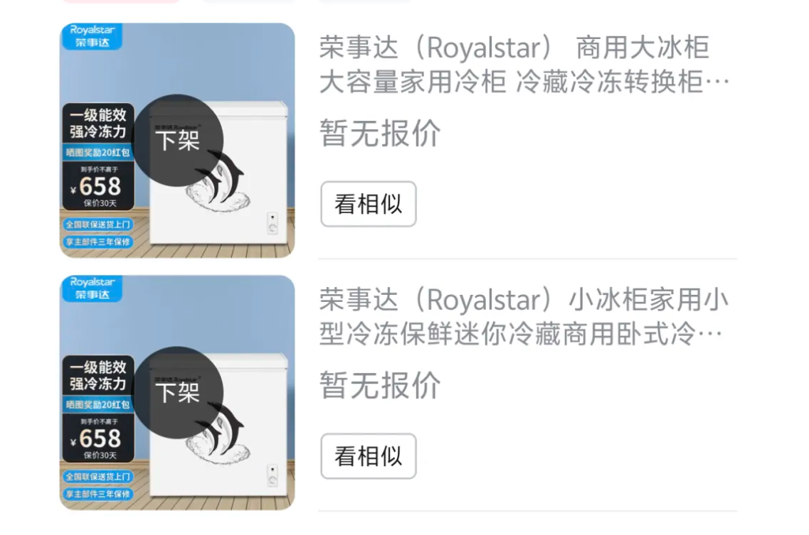 4月4日,相关冰柜商品页面显示“当前商品过期不存在”,产品已下架。