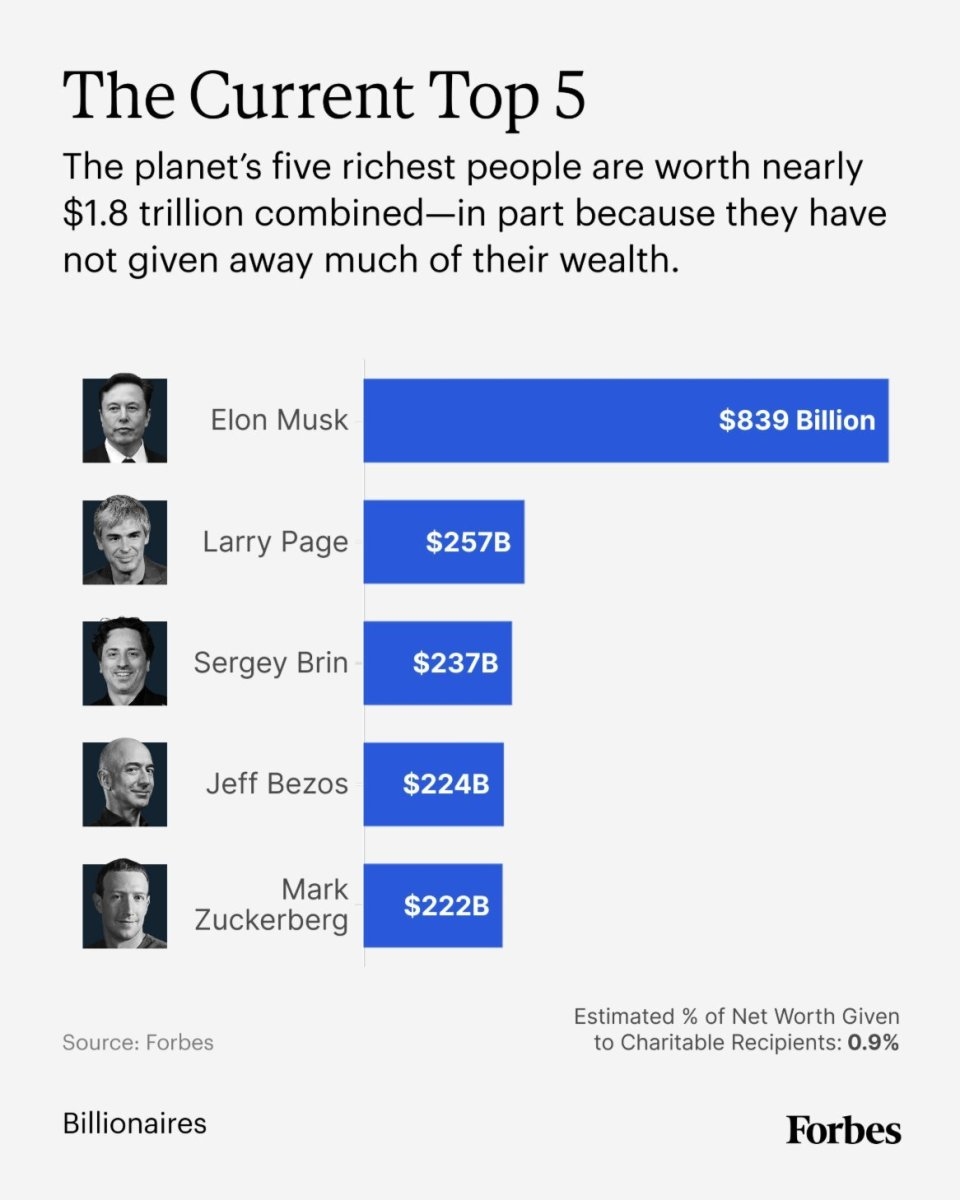 埃隆・马斯克以8390亿美元身家稳居全球首富,然而在公益慈善层面,他的投入长期处于低位,被《福布斯》评为全球“最不慈善”亿万富豪榜首。《福布斯》近日发布的富豪捐赠报告显示,马斯克直接捐赠给困难群体的资金约5亿美元,仅占其公开身家的0.06%,相当于每1000美元资产仅有60美分用于公益。