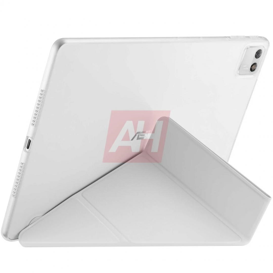 配件方面,华硕将提供至少一款官方保护壳,采用透明塑料材质,背部附带多功能折纸式支架,可根据不同使用场景调整支撑角度,收纳时可覆盖屏幕起到保护作用。