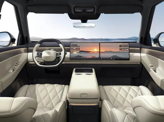 除了搭载自家EA211增程器、外购Momenta R7,ID.ERA 9X还有哪些“过人本领”?底盘配备前双叉臂后五连杆、双腔空悬、后轮转向、电磁悬挂,车内搭载冰箱、大屏、零重力座椅等等,基本上是竞品“9系”车型有的配置,ID.ERA 9X悉数配齐。