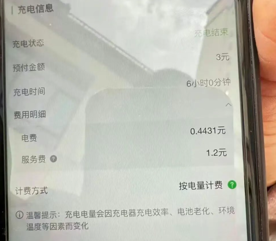 近日,西安的一位业主在小区门口公共充电桩充电时,发现计费结算后服务费竟然比电费高出近2倍。有业主的充电记录显示,她在6小时充电中,电费仅为0.44元,服务费却达到1.2元。