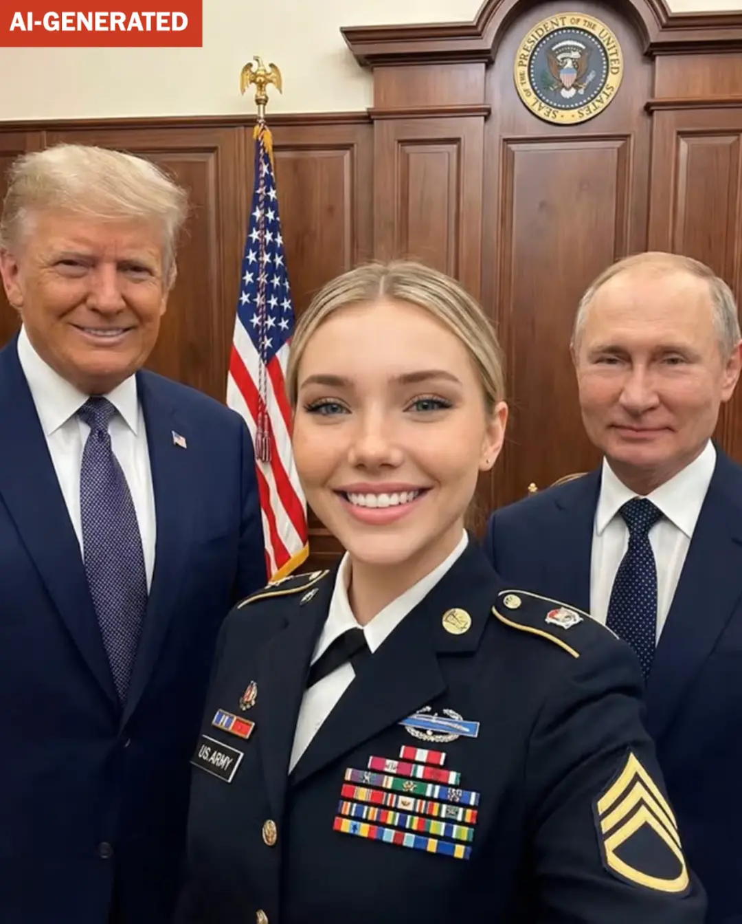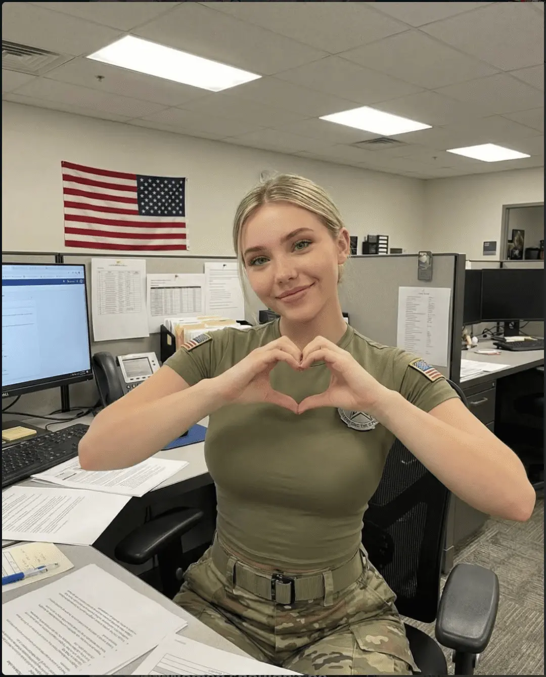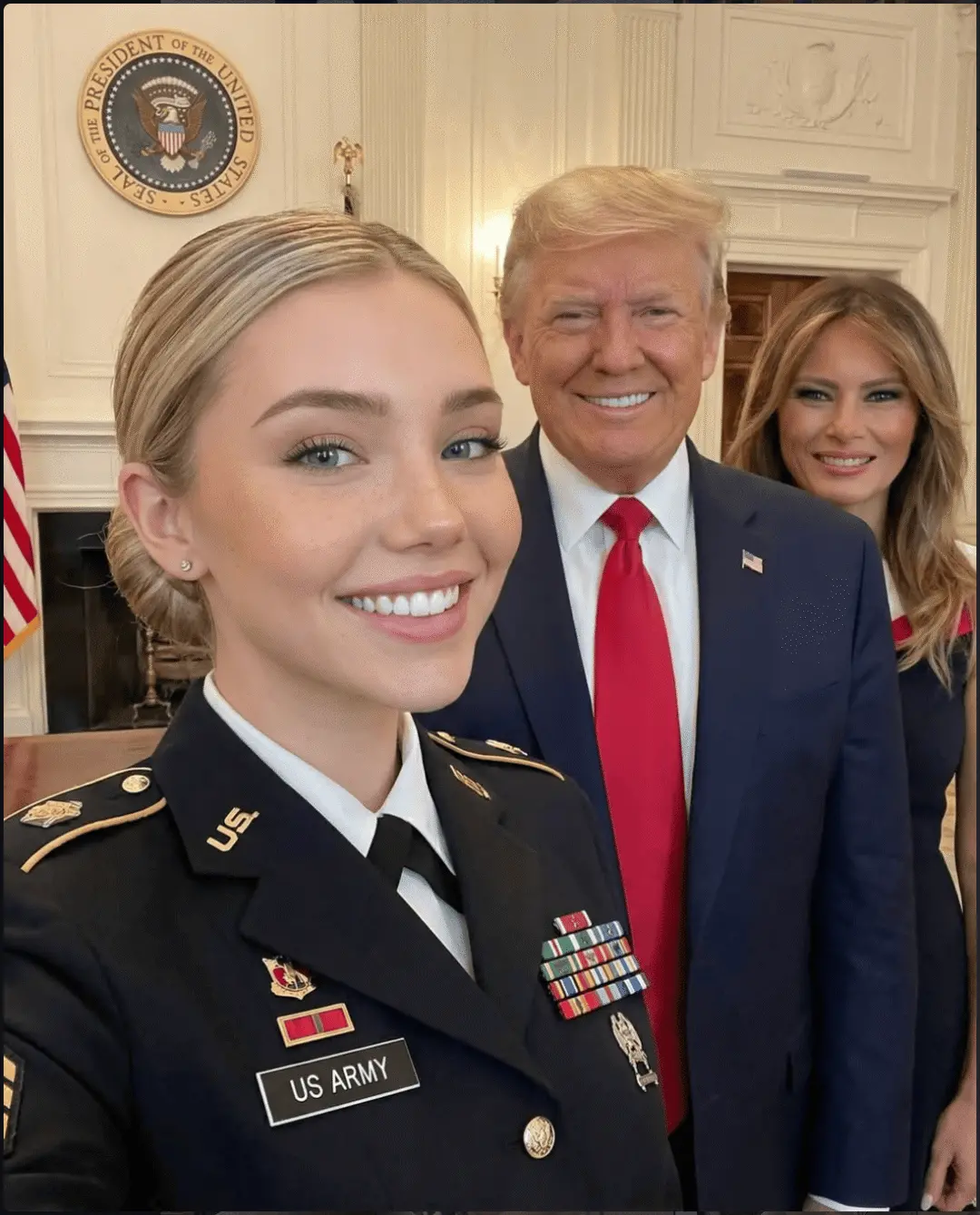 一个Ins账号,四个月狂揽百万粉丝!照片里,一位金发碧眼的美国女兵,时而身着迷彩服穿梭在中东沙漠,时而与特朗普总统在机场停机坪上并肩而行,甚至出现在与普京、泽连斯基的外交峰会现场。