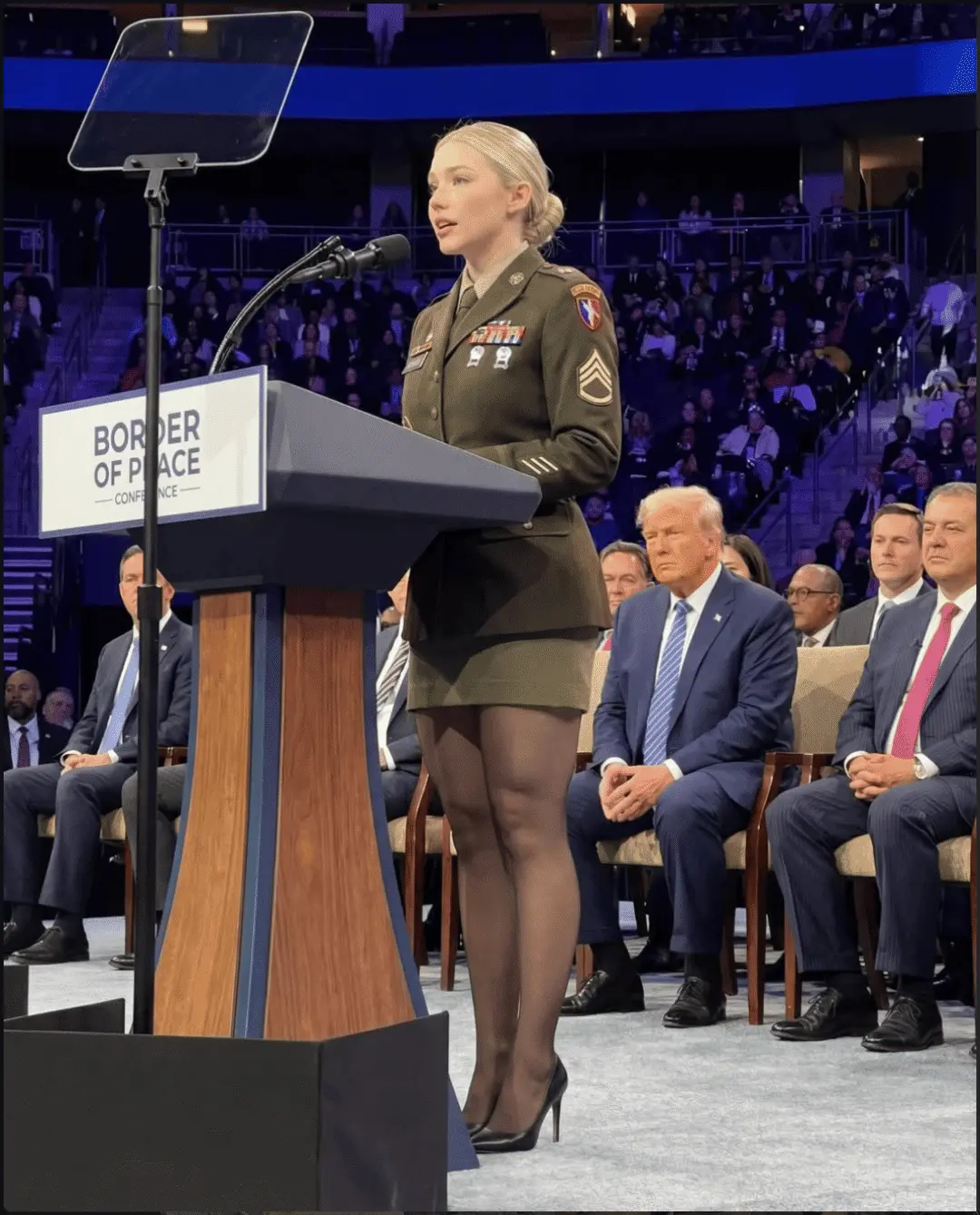 她甚至出现在了特朗普的“和平委员会”演讲台上,总统本人就坐在她身后。