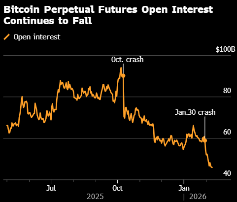 期权市场传递出类似信号。比特币的隐含波动率已大幅回落,从周四约83%降至目前约60%,显示市场对短期内出现大幅价格波动的预期明显降低。但仓位指标仍偏防御。
