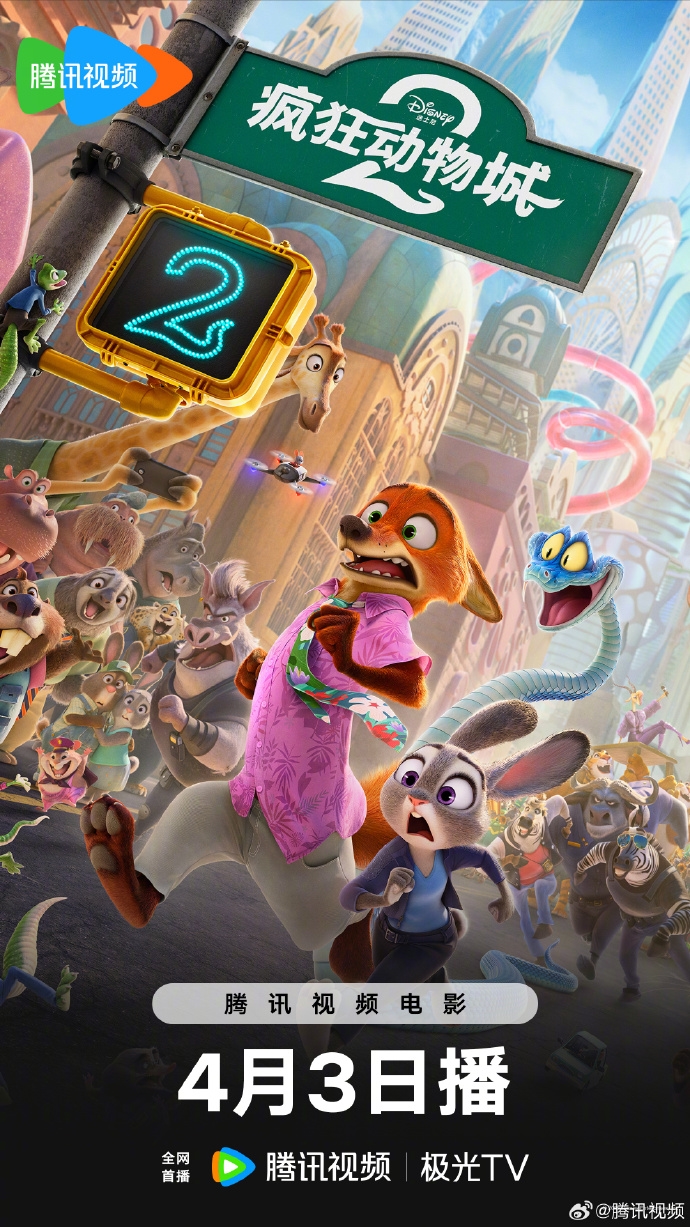 今日,迪士尼爆款动画电影《疯狂动物城2》网播定档,将于4月3日在爱奇艺、优酷、腾讯视频等视频网站上线。《疯狂动物城2》于2025年11月26日在中国内地上映,截至目前,该片累计票房达45.94亿元,