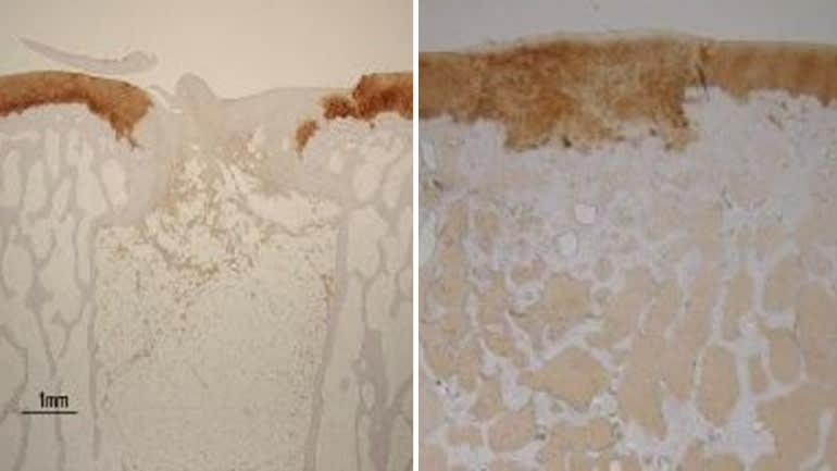 此次试验将重点关注患有特发性膝关节骨坏死的患者群体。研究团队计划从人体脂肪组织中提取细胞并制成3D打印移植材料。在具体临床操作中,医生将在藤田医科大学医院和庆应义塾大学医院,分别为2名和3名患者植入直径8毫米的圆柱形生物材料。移植入病变膝盖骨后,该材料将持续释放骨骼与软骨再生所需的营养成分。在进入人体临床阶段前,该方法已在猪身上完成了安全性测试。