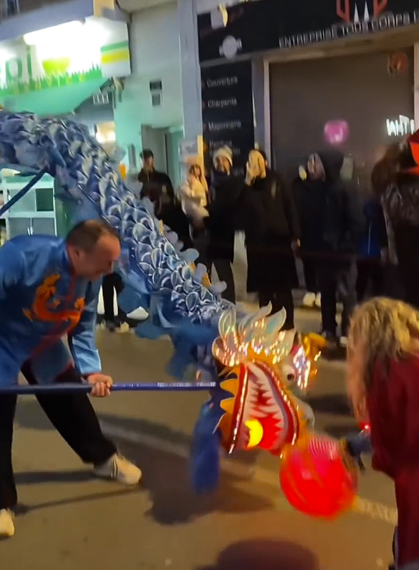 庆典现场充满了浓郁的中国传统元素,完全由法国人自主策划和表演,包括舞龙舞狮、功夫展演、烟花秀、庙会小吃、民俗体验等,热闹非凡,年味十足。