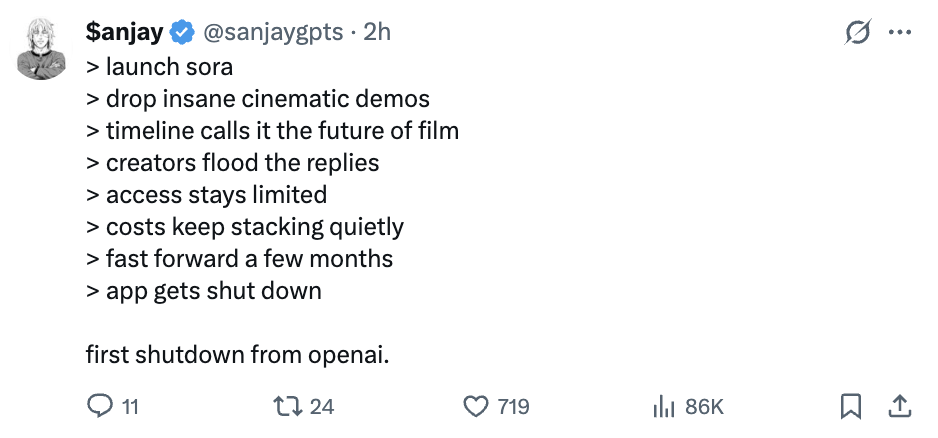 回顾Sora从火爆到凉凉历程,那叫一个高开低走。