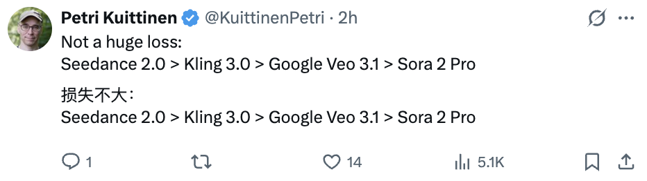 不过也有网友非常淡定,毕竟我们还有Seedance 2.0、Kling 3.0等更多优秀模型可用。