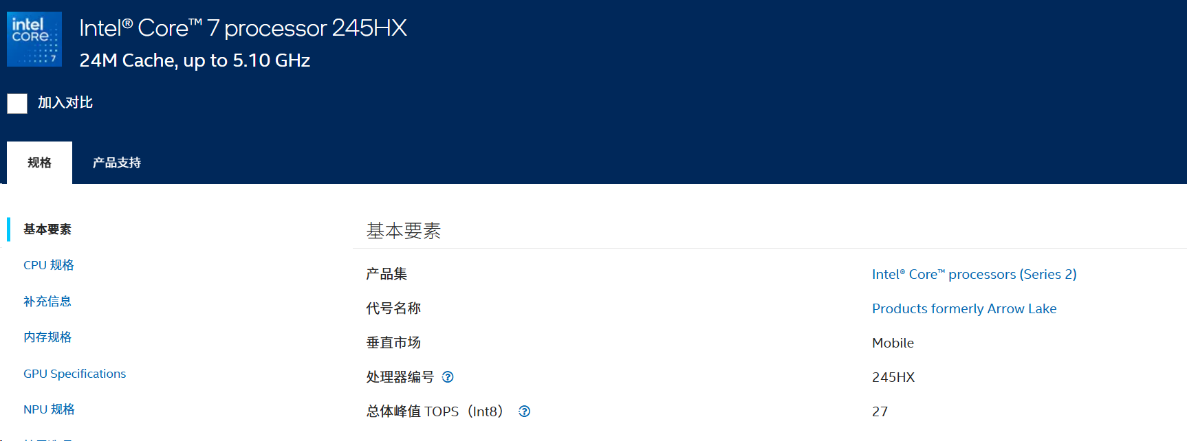 据官方页面信息显示,Intel悄然上线了一款新的移动端处理器酷睿7 245HX。这款芯片最大的看点并非性能参数,而是它不带任何酷睿Ultra品牌标识,成为Arrow Lake-HX系列中首款非Ultra产品。