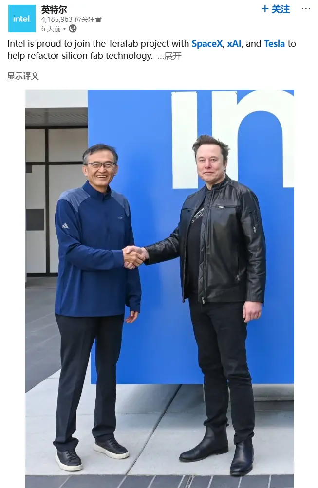 这个垂类网站曾在去年1月爆料“马斯克有意收购英特尔”的传言。那笔收购显然最后没成功,但最终演变成世界首富亲自下场的Terafab芯片项目,而英特尔也参与其中。