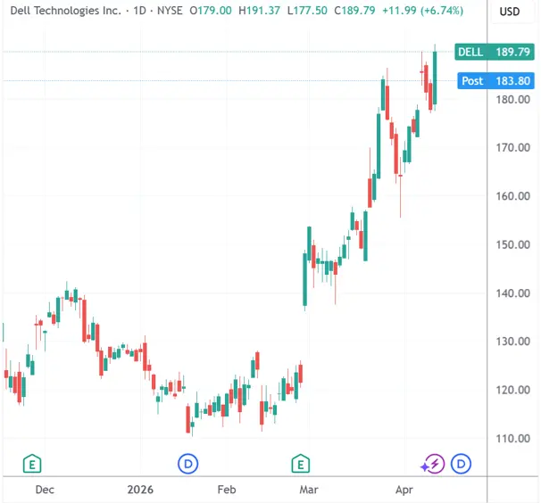 受此消息影响,戴尔和惠普周一分别收涨6.74%和5.31%,其中同样作为AI服务器概念股的戴尔创历史新高。