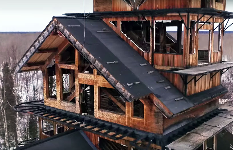 据他介绍,刚开始他只是想建一个二层小木屋,很普通的那种,建着建着,脑子里突然蹦出了“叠叠乐”的想法——把一栋房子盖在另一栋的房子上面。