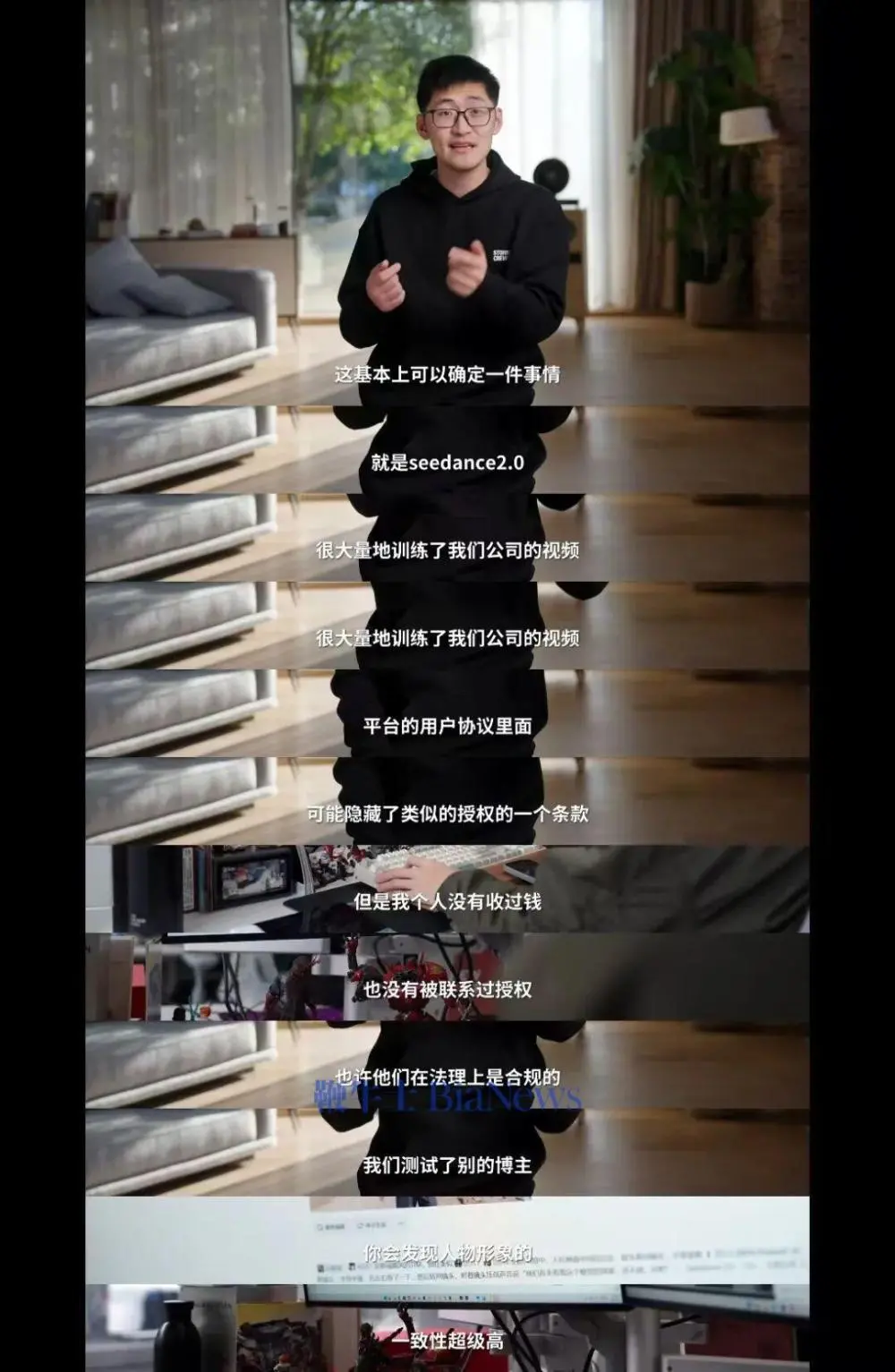 这一现象让他倍感震惊:这基本可以确定,影视飓风团队过往发布的大量视频,已被字节跳动用于Seedance2.0模型的学习和训练。