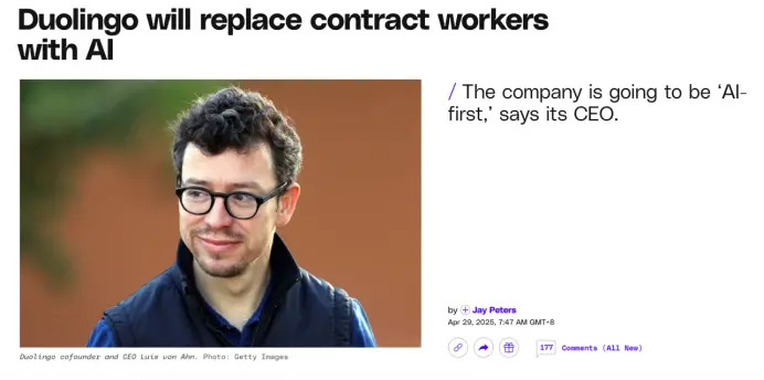 短短几年,多邻国已经完成了对AI的“上头”和“下头”。