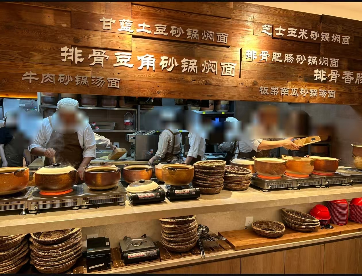 核心品类涵盖砂锅焖面、砂锅汤面,同时搭配卤味、砂锅菜、凉菜等辅助菜品,人均消费约50元。