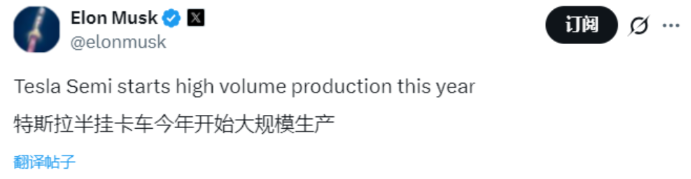 马斯克最近也在社交平台确认,特斯拉半挂卡车今年就会开始大规模生产。