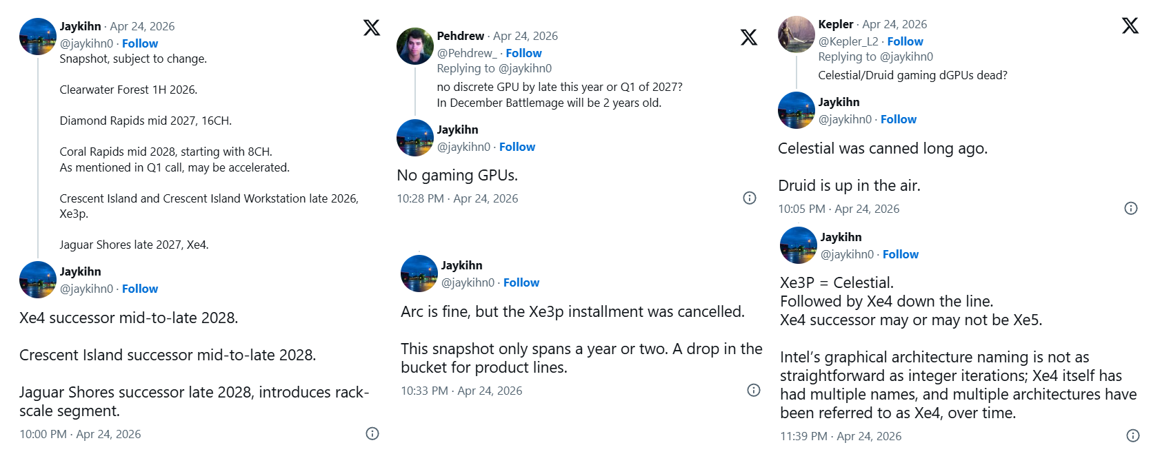 至于第四代Xe4架构是否还有游戏显卡,依然悬而未决(up in the air),AI加速卡预计是Jaguar Shores。