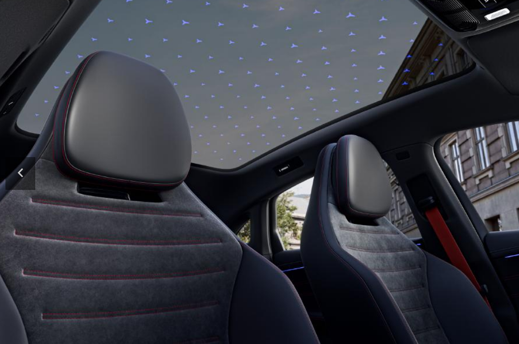 外观延续EQE和EQS流线设计,配备发光格栅与星形LED灯组,AMG Line版本预计将提供更运动化外观套件。