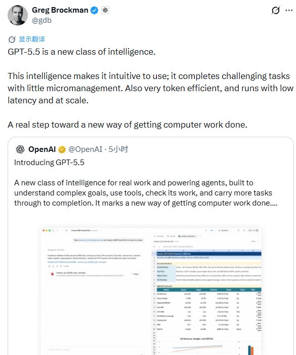 GPT-5.5与此前模型最核心的区别,在于它不再只是等着你一步步告诉它怎么做。用OpenAI总裁格雷格·布罗克曼(Greg Brockman)的话说,这个模型真正特别的地方在于它能在更少的指导下做更多的事,可以审视一个不明确的问题并自己弄清楚下一步该做什么。