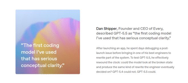 Cursor的联合创始人兼CEO迈克尔·特鲁尔(Michael Truell)从产品角度指出,GPT-5.5明显比GPT-5.4更聪明且更持久,能持续工作更长时间而不会提前停止,这对于用户委托给Cursor的复杂或长期运行的任务至关重要。而一位英伟达的工程师在提前失去访问权限后说那感觉像被截肢了一样。