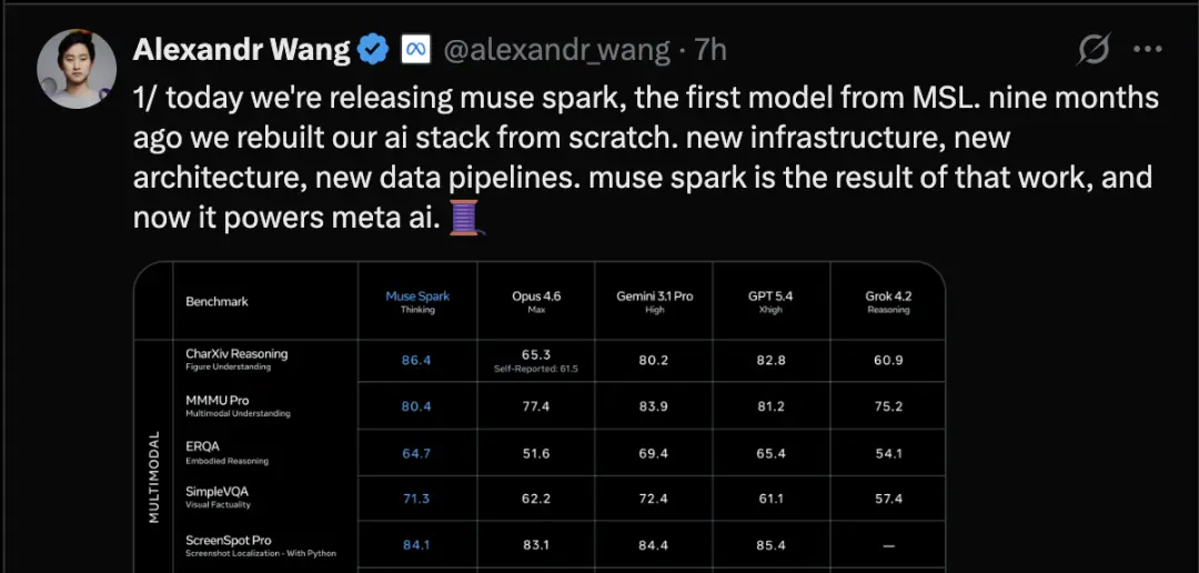 Alexandr Wang 甚至激动地在 X 上连发九条推文介绍该模型。
