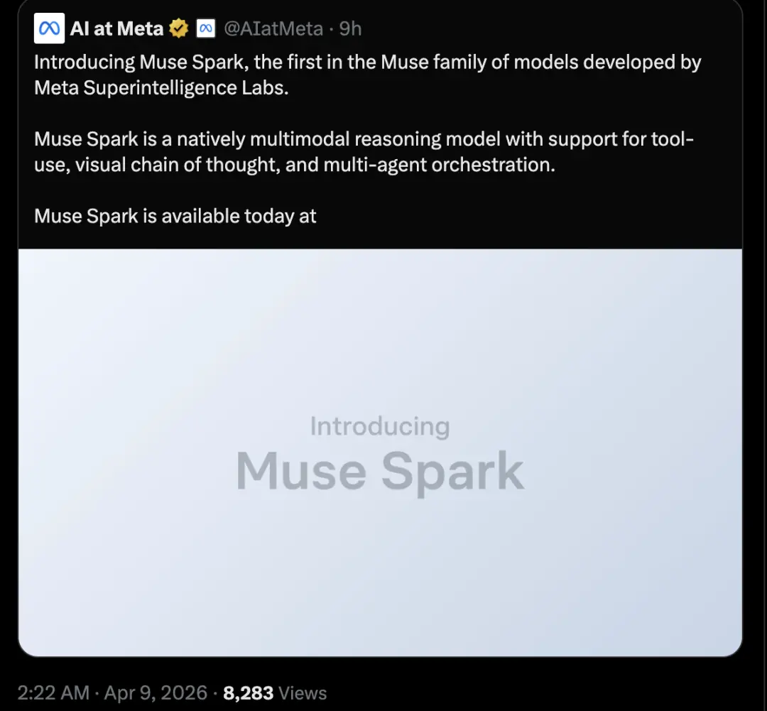 Muse Spark 的发布,并非一次单点技术升级,而更像是 Meta AI 战略的一次整体转向。