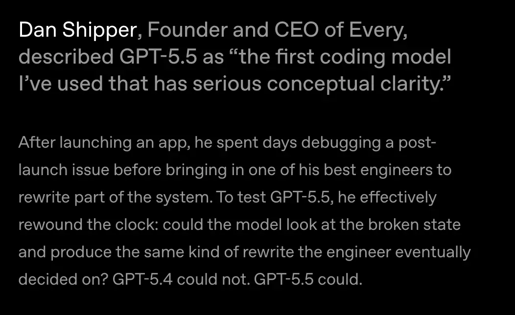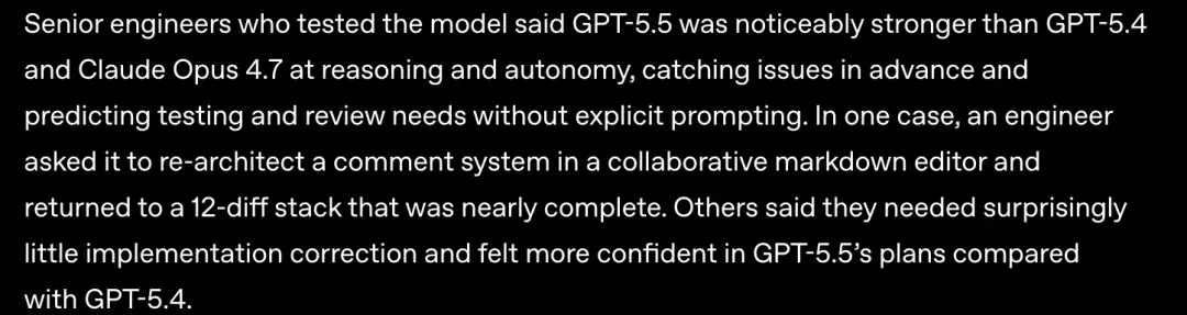 越来越多高级工程师在反馈同一件事:GPT-5.5在推理和自主性上明显强于GPT-5.4和Claude Opus 4.7。