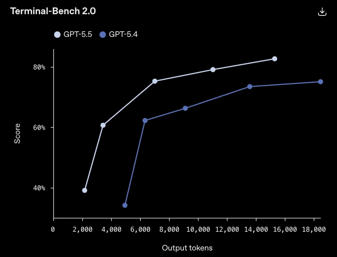 或者消耗同样的token,GPT-5.5完成的任务更多。