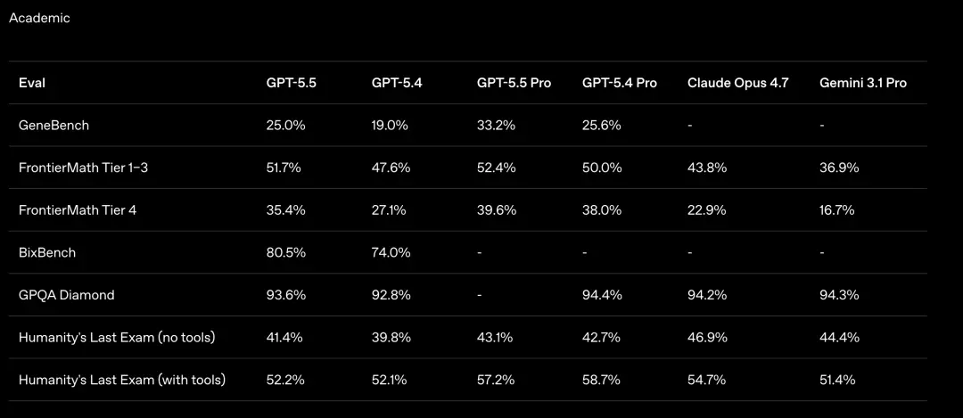 GPT-5.5 Pro在这个测试上拿下了39.6%。Claude Opus 4.7是22.9%,差距接近一倍了。