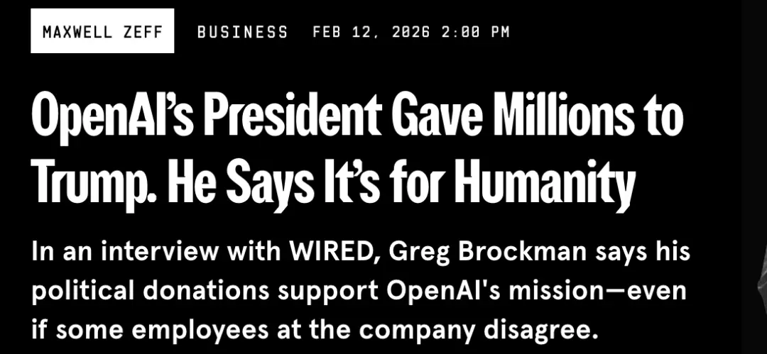 特朗普重新上台后,奥特曼迅速靠近新政府,并在白宫与特朗普共同宣布“Stargate”项目,OpenAI总裁Greg Brockman和妻子更是大手笔捐赠支持特朗普阵营。