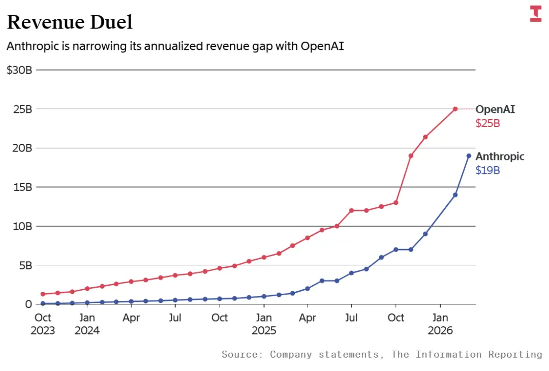 虽然OpenAI的年化收入达到了250亿美元,较去年年底增幅约17%,但Anthropic的增速已经实现了反超。